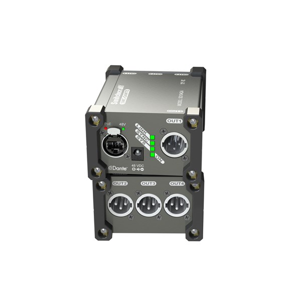 Converts up to four Dante/AES67 channels to individual analog line level outputs