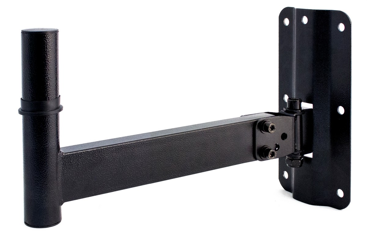 Wall mount heavy duty steel tube speaker stand. The directional mounting bracket allows both horizontal and vertical adjustment